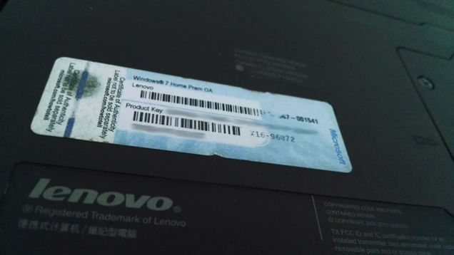 The first ever licensing key was used as part of the Windows 95 operating system and was displayed on the installation disc cover. Windows justified the issue of a licensing code by saying that it was trying to avoid illegal usage of its licensed software. Above is an example of the Microsoft Windows XP Home Edition product key. Usually, it is on the side or bottom of an OEM desktop computer. On an OEM laptop, it may be on the bottom of the laptop, or underneath the laptop battery.